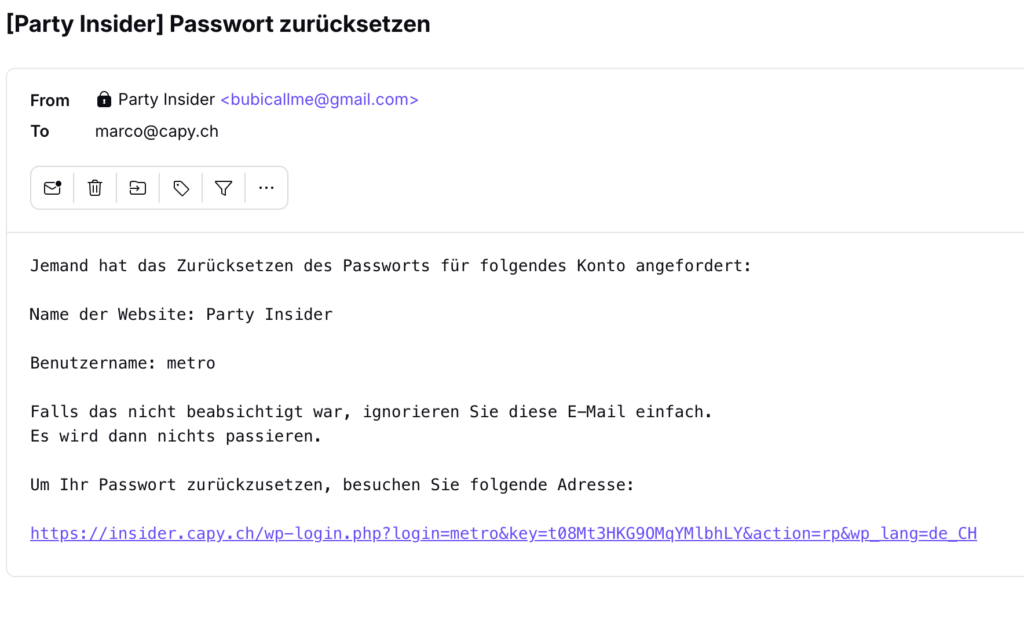 Anschliessend erhaltest du eine E-Mail von uns, welche dich auffordert dein Passwort zurückzusetzen. Klicke wie in der E-Mail beschrieben auf den Link um dein Passwort zu setzen.