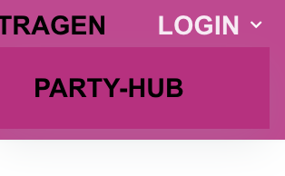 Melde dich zuerst bei Party Insider an und wechsle danach zum Party-Hub. Klicke dazu nach der Anmeldung oben im Menü auf PARTY-HUB: