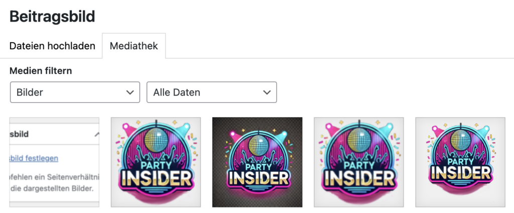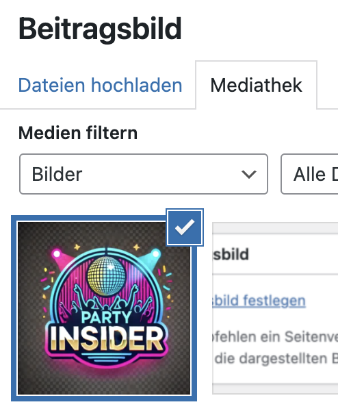 und danach unten rechts auf den blauen Button Beitragsbild festlegen klicken: