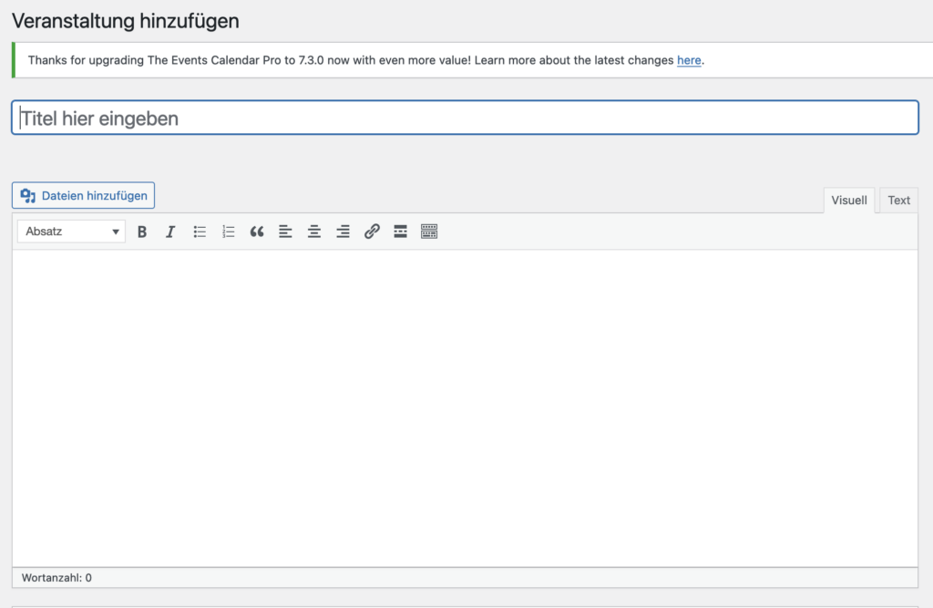Gebe nun für deinen Event das Datum und die genaue Uhrzeit ein. Wichtig gib immer wenn möglich das Ende der Veranstaltung an.