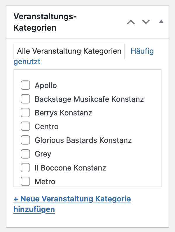 Auf der rechten Seite unter Veranstaltungs-Kategorieren deine Location auswählen: