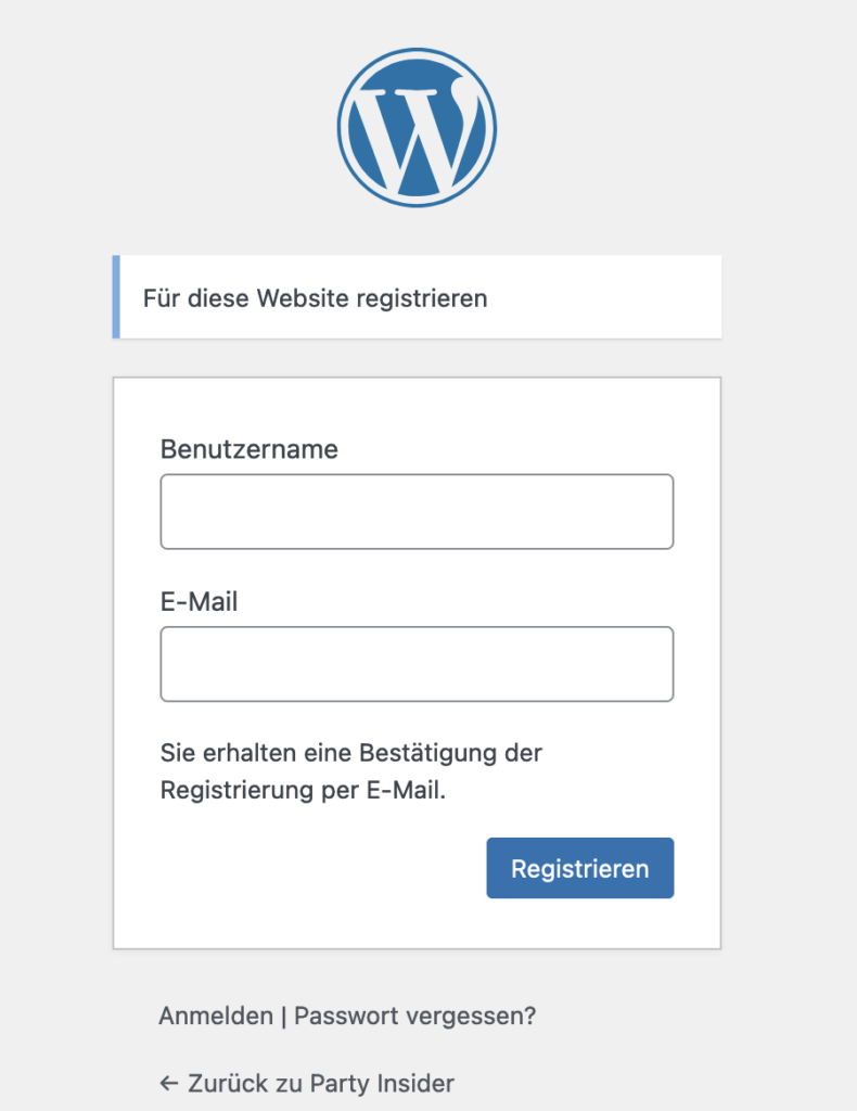 Damit du dich bei uns anmelden kannst benötigt es nur deinen Benutzernamen und E-Mail Adresse. Klicke anschliessend auf Registrieren.