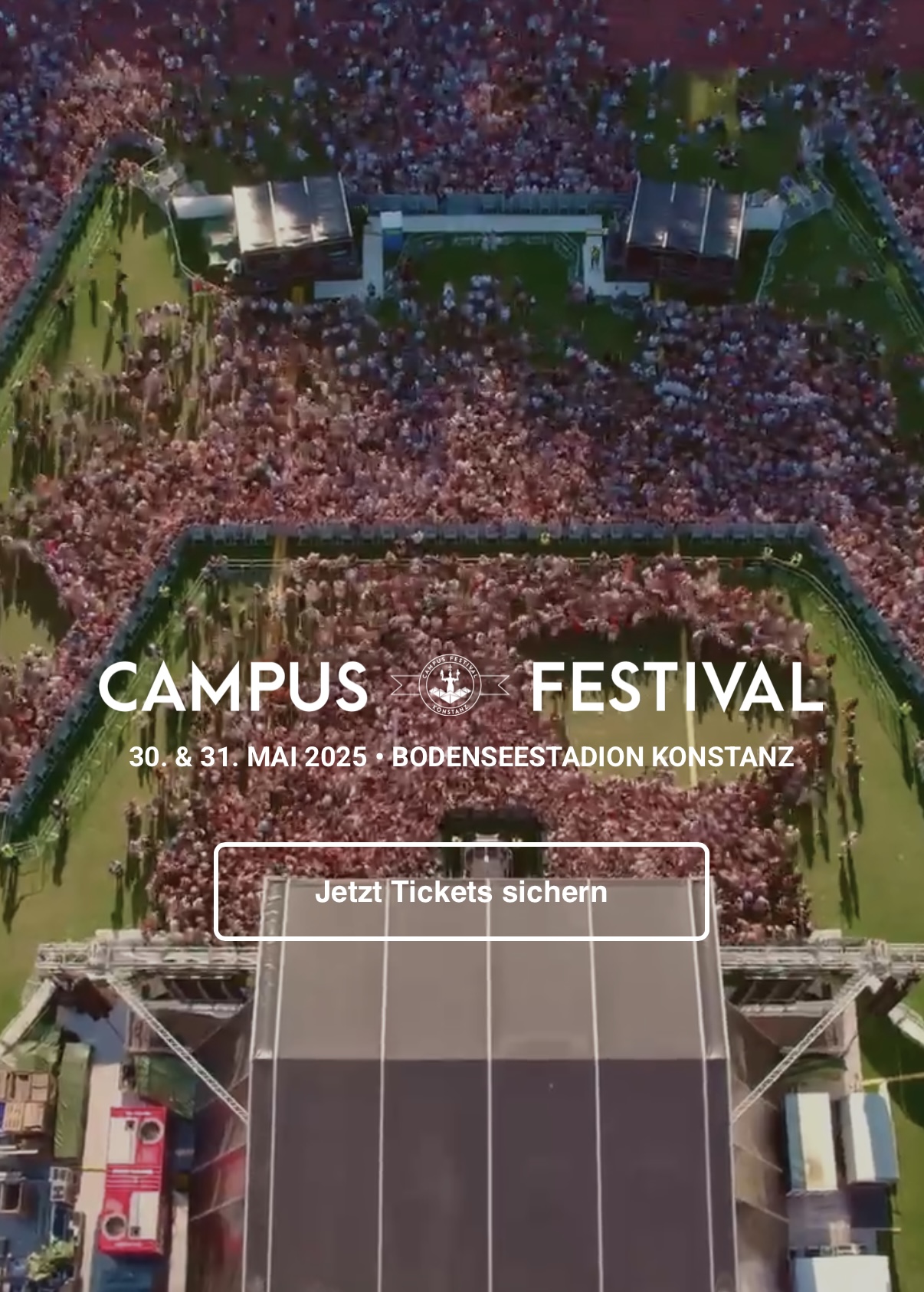 Das Campus Festival Konstanz feiert 2025 ein ganz besonderes Jubiläum: Zum zehnten Mal öffnen sich am 30. und 31. Mai die Tore des Bodenseestadions für sein liebgewonnenes kulturelles Highlight. Gemeinsam mit jung und alt von nah und fern möchten wir diesen Anlass feiern.