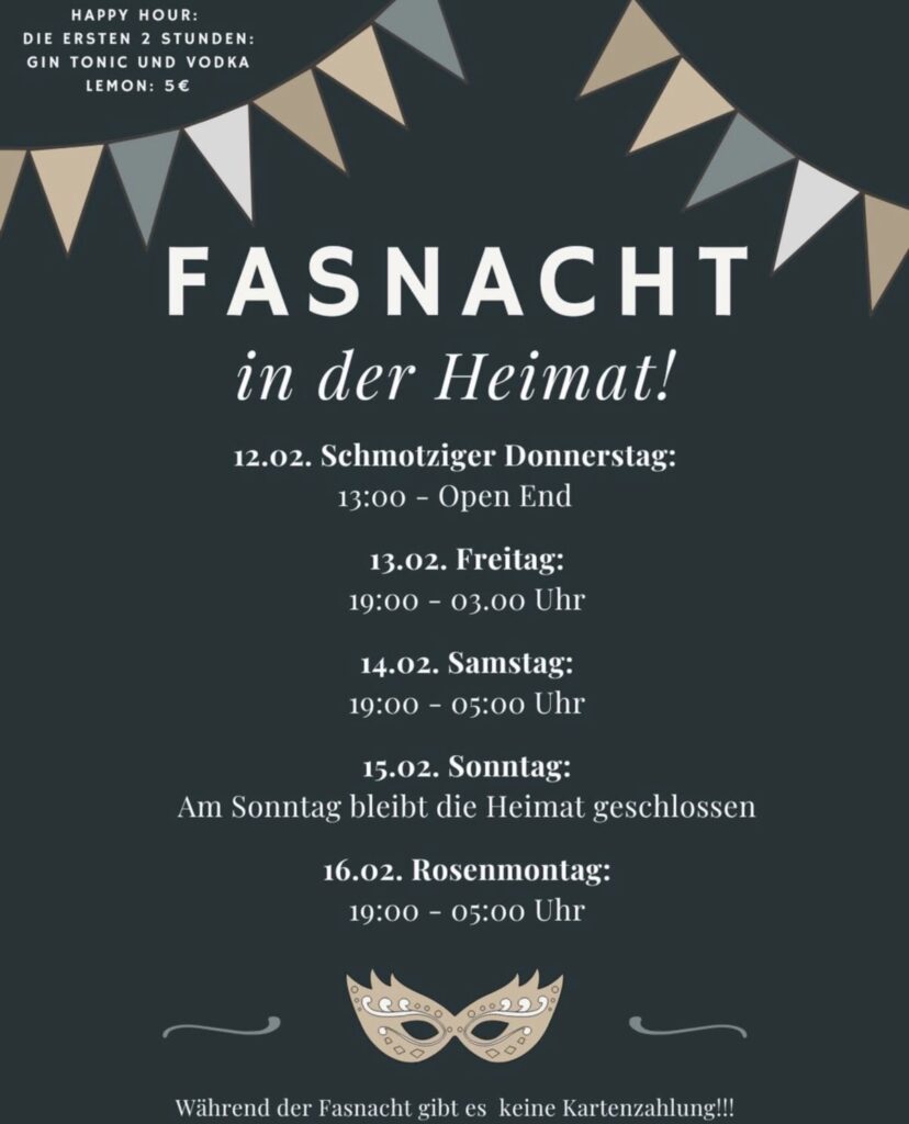 Bitte beachten: Während der Fasnachtszeit ist nur Barzahlung möglich!!!