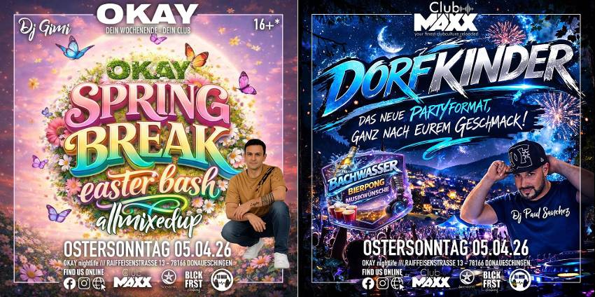 Am 04.04.2026 erwartet euch im OKAY Nightlife Donaueschingen eine Nacht voller Energie, Rhythmus und Partyfeeling!