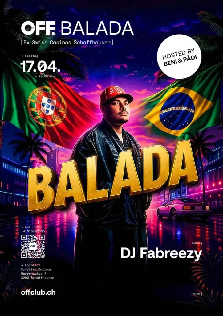 Nach einem sehr erfolgreichen Debüt zieht das erfolgreiche Label Afro-Boom mit seinem unverwechselbaren Afro-Sound am Samstag, 18. April 2026, zum zweiten Mal bei uns in den „OFF.“ Pop-up-Club im ehemaligen Swiss Casinos am Herrenacker 7 in Schaffhausen ein. Freut euch auf eine Nacht voller Afrobeats, Hip-Hop, Amapiano und pulsierender Club-Vibes, die die Tanzfläche zum Beben bringen werden! Mit dabei sind die DJs Dux und Hazo, die euch mit ihrer Energie durch die Nacht führen. Kommt früh, bleibt lange – es wird boomen!