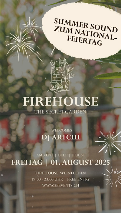 Am 01. August heisst es im Firehouse: feiern, geniessen und den Nationalfeiertag zelebrieren – begleitet von feinsten Beats mit DJ Artchi!