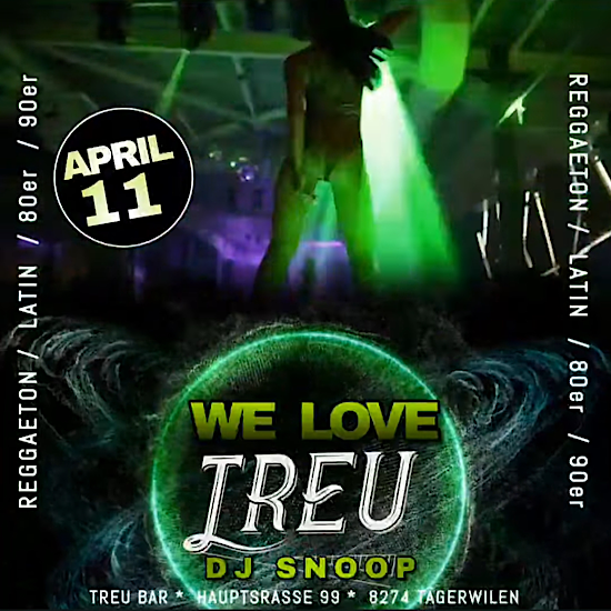 Apr. 11 11 April @ 21:30 - 2:00 We Love im Treu Tägerwilen Zur Treu Tägerwilen Hauptstrasse 99, Tägerwilen Veranstaltung Details Get Directions
