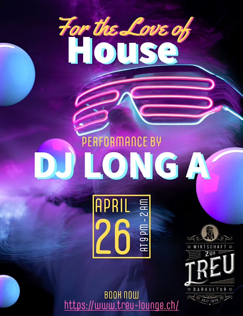 Apr. 26 26 April @ 21:00 - 2:00 For the Love of House in Treu Tägerwilen Zur Treu Tägerwilen Hauptstrasse 99, Tägerwilen Veranstaltung Details Get Directions
