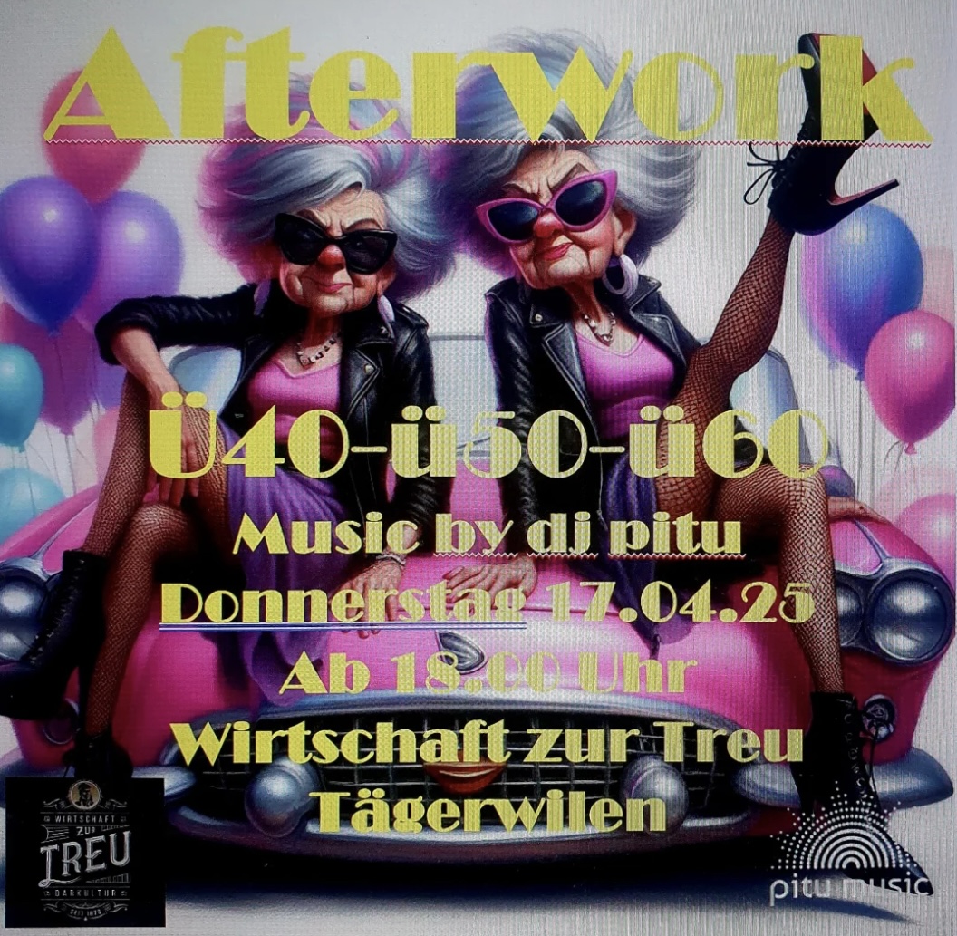 Apr. 17 17 April @ 18:00 - 2:00 Afterwork Ü40-Ü50-Ü60 in Treu Tägerwilen Zur Treu Tägerwilen Hauptstrasse 99, Tägerwilen Veranstaltung Details Get Directions