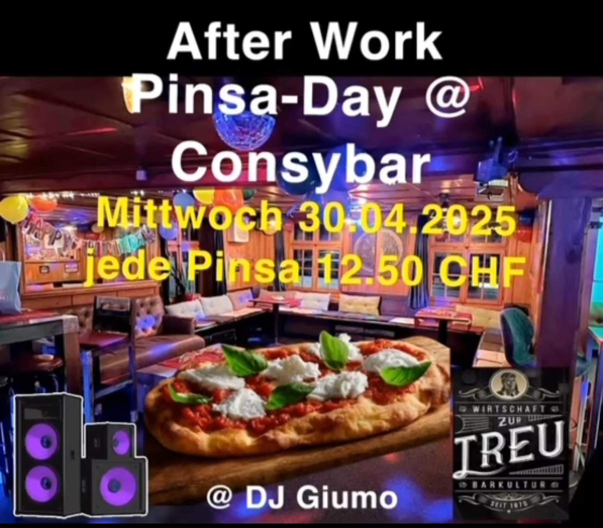 Apr. 30 30 April @ 21:00 - 2:00 Afterwork Pinsa-Day in Treu Tägerwilen Zur Treu Tägerwilen Hauptstrasse 99, Tägerwilen Veranstaltung Details Get Directions