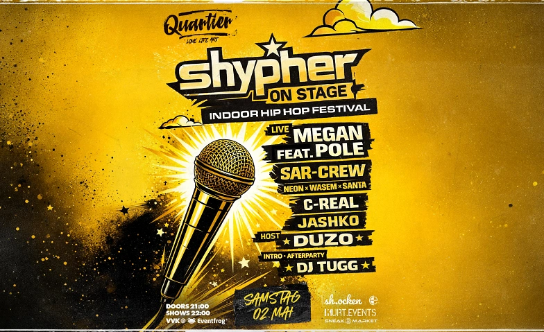 Quartier Klub Schaffhausen Stadthausgasse 13,Schaffhausen,SwitzerlandSHYPHER ON STAGE / SA 02. MAI - QUARTIER Klub ------------------------------------------------------------------------- SH Rap hat endlich wieder eine Bühne!!! 🔥 Nach dem erfolgreichen Release vom sh.ypher – 43 Rapper*innen, 2 Beats,… Weiterlesen »SHYPHER ON STAGE – Quartier Klub Schaffhausen