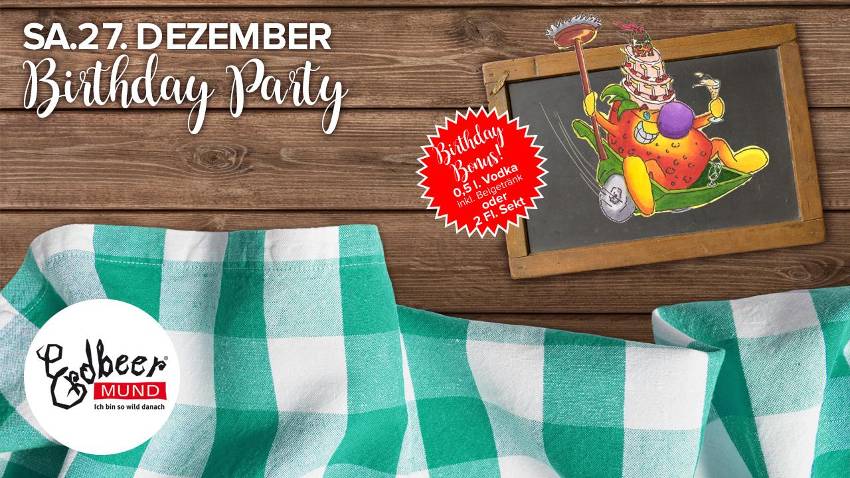 Erdbeermund Singen Otto-Hahn-Str. 5,Singen (Hohentwiel),GermanyHappy Birthday an alle Dezmber Geburtstagskinder!!! Wir feiern gemeinsam mit dir das Älter-werden 🙂 !! Du hattest diesen Monat Geburtstag? Dann check bis 24 Uhr ein und du erhältst freien… Weiterlesen »Birthday Party – Erdbeermund Singen