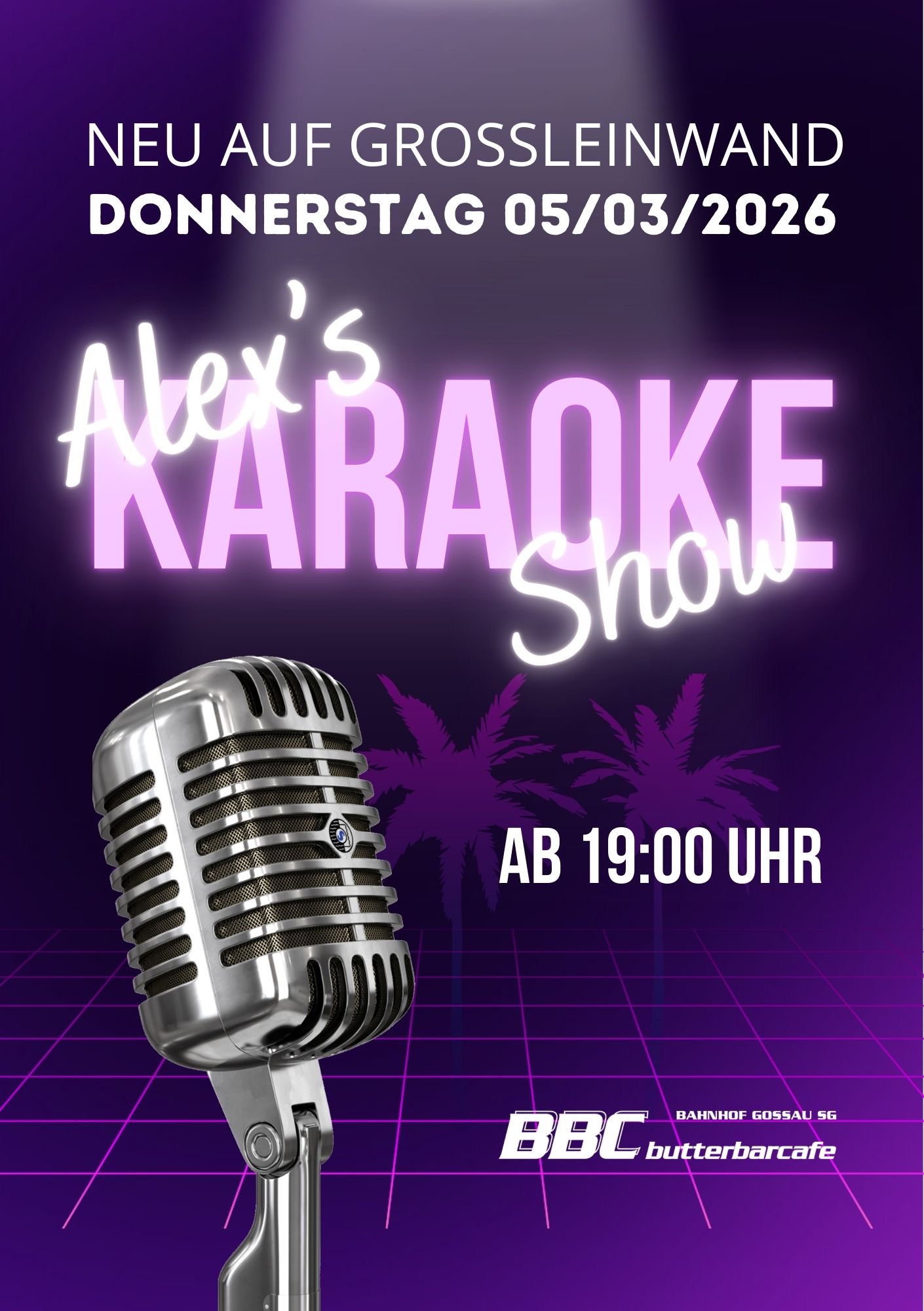 BBC butterbarcafe Gossau Güterschuppen, Bahnhofplatzstrasse,Gossau,Switzerlandab 19:00 Uhr Karaoke auf der Grossleinwand mit Moderator DJ Alex - Alex's Karaoke Show