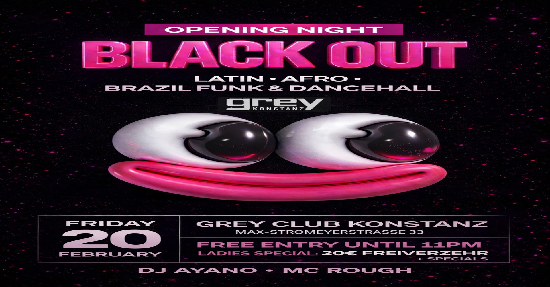 Grey Konstanz Max-Stromeyerstr. 33,Konstanz,Germanyđź–¤ BLACKOUT EVENTS đź–¤ 20 EURO FREIVERZEHR FĂśR LADIES! đź–¤ BLACKOUT EVENTS đź–¤ LATIN • AFRO • BRAZIL FUNK • DANCEHALL One Night. One Energy. One Vibe. Diese Nacht steht… Weiterlesen »BLACK OUT – Grey Konstanz