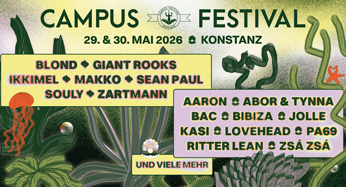 Bodenseestadion Konstanz Eichhornstr 89,Konstanz,GermanyCampus Festival Konstanz 2026 29. & 30. Mai 2026 im Bodenseestadion 2 Tage - über 30 Live-Acts - 4 Bühnen Am 29. und 30. Mai 2026 ist es wieder so weit: Das Campus Festival Konstanz geht in die 11. Runde – und wir freuen uns auf ein weiteres unvergessliches Wochenende voller Musik, Kreativität und Gemeinschaft… Weiterlesen »Campus Festival 2026 – Bodenseestadion Konstanz