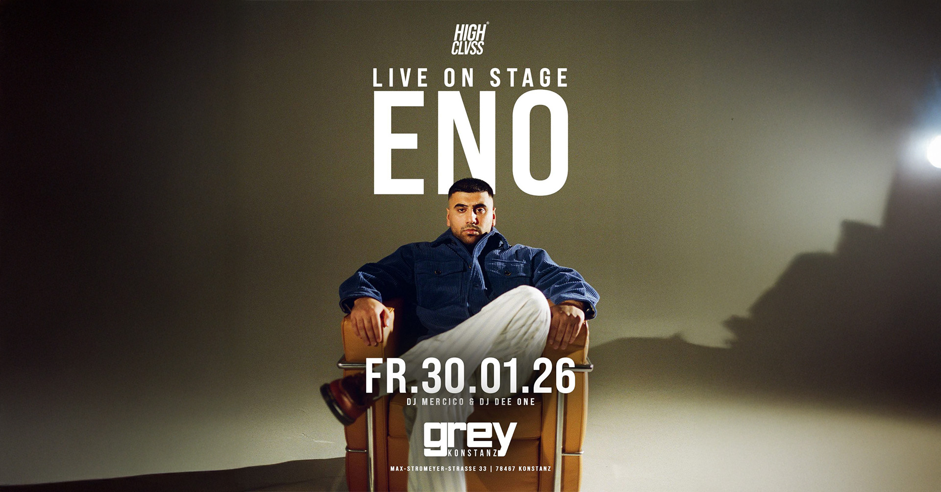 Grey Konstanz Max-Stromeyerstr. 33,Konstanz,Germany🔥 ENO CLUB-SHOW 🔥 PARTY AUF 4 FLOORS ENO live on stage im Grey Konstanz 🔥 Am Freitag, 30.01.2026, kommt ENO für eine exklusive Clubshow ins Grey Konstanz. Einer der prägendsten Artists der deutschen Rap-Szene, live, nahbar und mit maximaler Energie – mitten im Club. Vor und nach dem Live-Act sorgen DJ Mercico & DJ… Weiterlesen »ENO CLUB-SHOW – Grey Konstanz