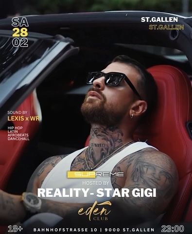 Eden Club St. Gallen Bahnhofstrasse 10,St. Gallen,SwitzerlandFirst Time and exclusive in St.Gallen/ Switzerland đ¨đđĽ We proudly welcome @gigibirofio to Supreme! Straight outta Germany! âĄď¸ Saturday 28.February 2026 - @edenlounge.sg Reality TV Star Gigi Birofio ist bei uns als Host zu Gast. Durch seine Teilnahme bei den Tv Shows: Love Island, Dschungel und Ex on the Beach wurde er Weltweit bekannt. Itâs… Weiterlesen »Supreme Gigi – Eden Club St. Gallen