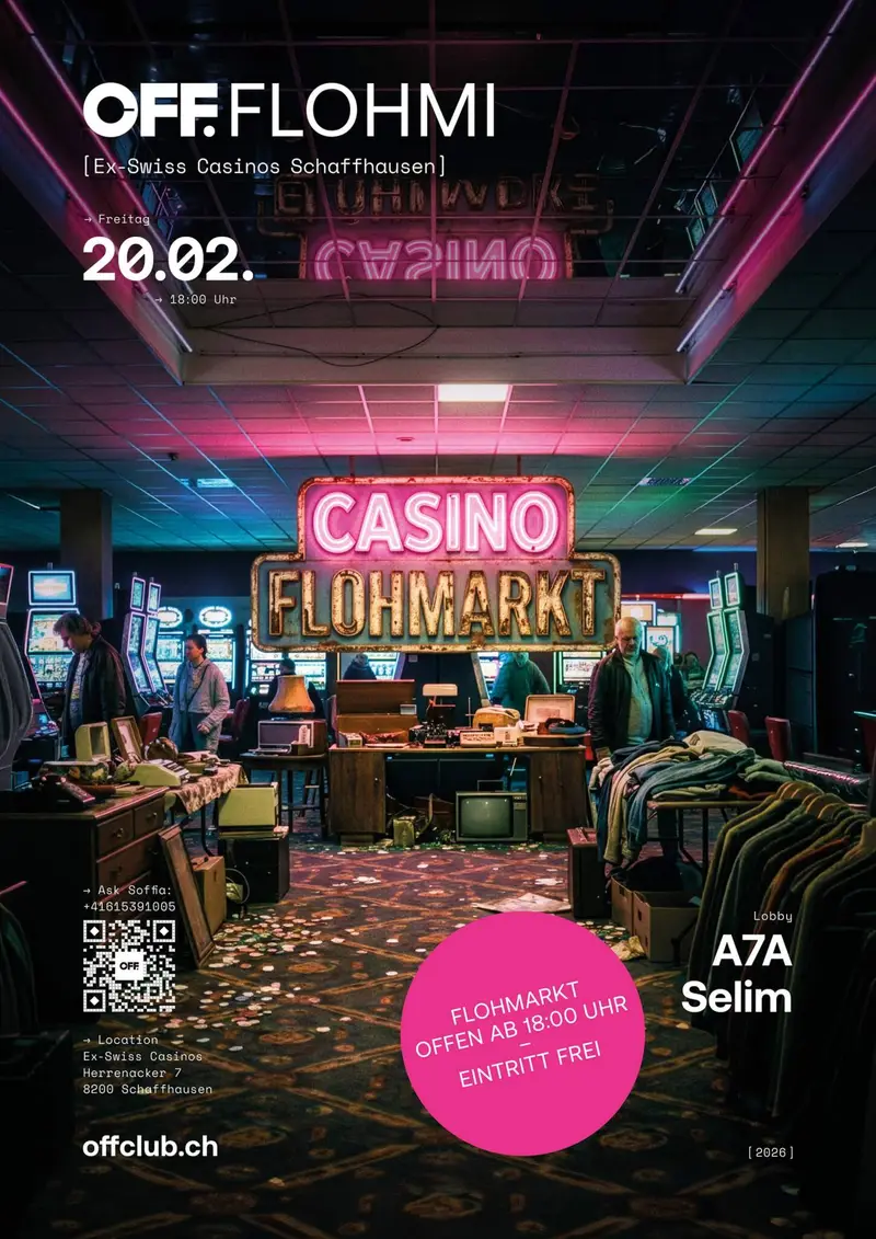 Ex-Swiss Casinos Schaffhausen Herrenacker 7,Schaffhausen,SwitzerlandLobby: House & Classics Stöbern, staunen und SchnĂ€ppchen entdecken! Am Freitag, dem 20. Februar 2026, öffnet der Casino-Flohmarkt im OFF.Pop-up-Club am Herrenacker 7 in Schaffhausen um 18 Uhr seine TĂŒren. Entdecke SchĂ€tze aus dem ehemaligen Swiss Casinos. Antike Möbel, SchirmstĂ€nder, KupferraritĂ€ten, BĂŒrostĂŒhle, hochwertige Ăberwachungskameras, Bildschirme, Kronleuchter sowie Deko- und SammlerstĂŒcke. Viele der Artikel, die aktuell… Weiterlesen »CASINO FLOHMARKT – Ex-Swiss Casinos Schaffhausen