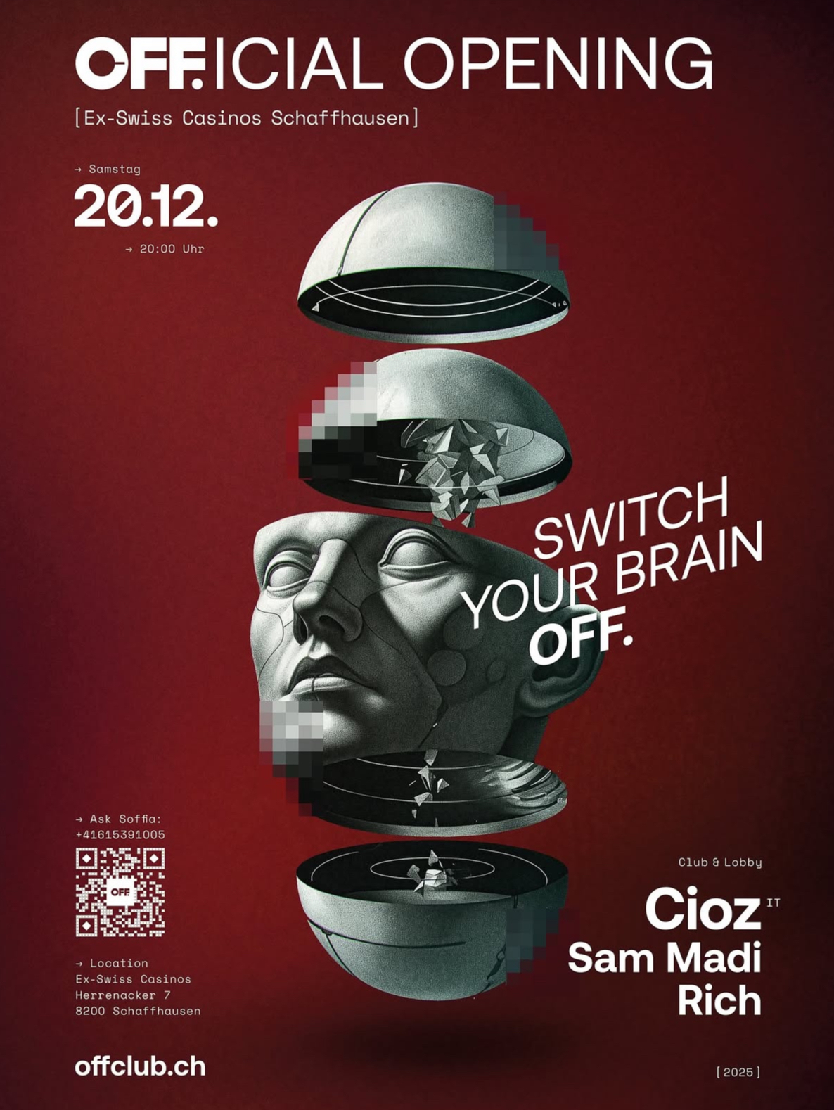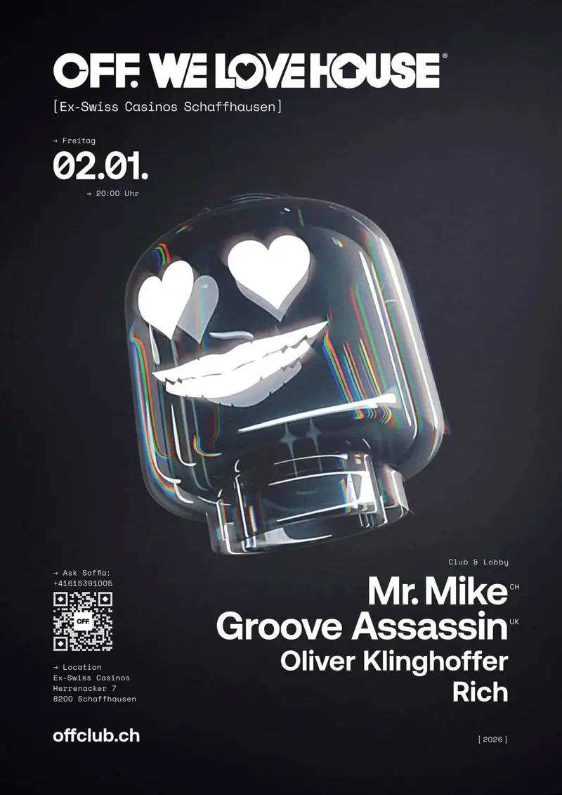 SATURDAY, 20 DECEMBER 2025 Ein Ort mit Geschichte wird zum Raum für die Gegenwart - in einer einzigartigen OFF-Location. Der temporäre OFF Pop-up-Club öffnet am Samstag, dem 20. Dezember 2025, um 20 Uhr offiziell seine Pforten. Er befindet sich in den historischen Mauern des ehemaligen Swiss Casinos am Herrenacker 7 in Schaffhausen. Für kurze Zeit… Weiterlesen »OFF.ICAL OPENING – Ex-Swiss Casinos Schaffhausen |
