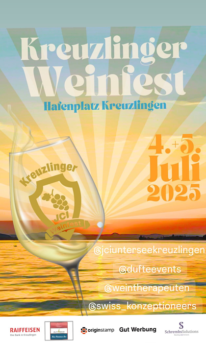 Das erste internationale Weinfest in Kreuzlingen 4. und 5. Juli 2025 Erlebe erlesene Weine aus dem Thurgau und der Bodensee-Region – direkt am Hafen von Kreuzlingen. Umgeben vom einzigartigen See-Ambiente geniesse genussvolle Momente und gute Gespräche.