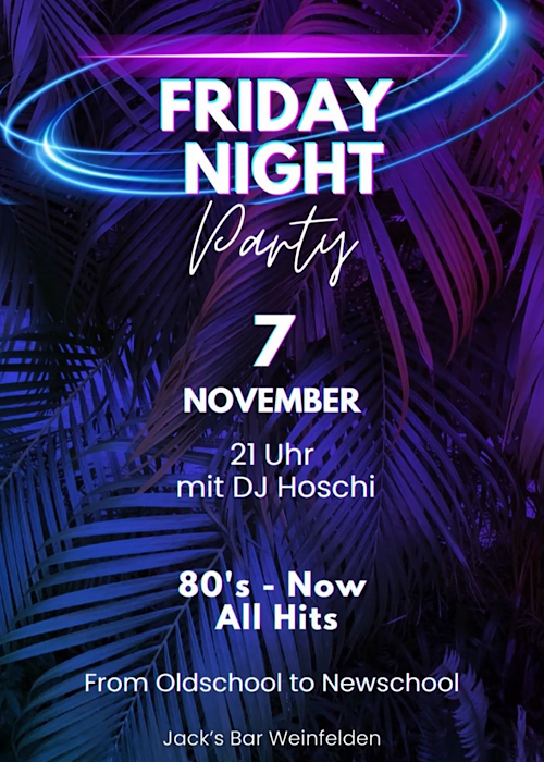 Friday Night Party 7. November | ab 21 Uhr | Jack's Bar DJ Hoschi bringt die besten Hits von den 80ern bis heute Kommt vorbei Euer Jack's & Duffy's Team #80s #90s #2000s #today #partytime #fridaynight #goodvibes #fun #hits #bestbartender |