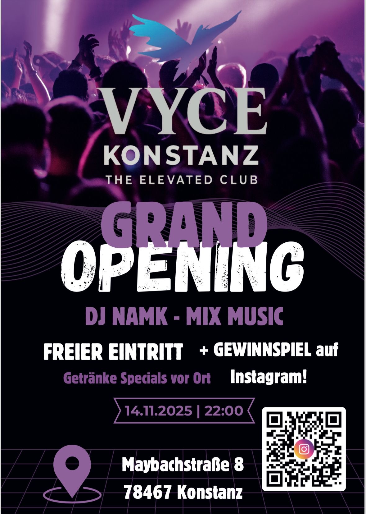 Konstanz bekommt ein neues Zuhause für die Nacht. Am 14. November feiern wir das Grand Opening des Vyce Club - mit Stil, Sound & Skyline-Vibe. DJ Namik an den Decks Mix Music auf 2 Floors Penthouse Feeling Ab 22 Uhr | Freier Eintritt | Ab 18 Dress sharp. Dance free. Feel Vyce. #VyceClub #Konstanz #GrandOpening… Weiterlesen »Grand Opening – VYCE Konstanz |
