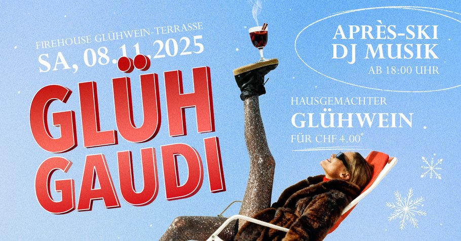 Am Samstag, 08. November 2025, verwandelt sich die Firehouse Glühwein-Terrasse in den wohl gemütlichsten Après-Ski-Place im Thurgau! ❄️ Feier den Saisonstart des Winterzimmers mit heissem hausgemachtem Glühwein (CHF 4.–*), Après-Ski DJ Musik ab 18 Uhr und richtig guter Stimmung. Ob im Fellmantel, in der Skibrille oder einfach mit Freunden – hier trifft Winterfeeling auf Partystimmung.… Weiterlesen »Glüh Gaudi – Firehouse Weinfelden |