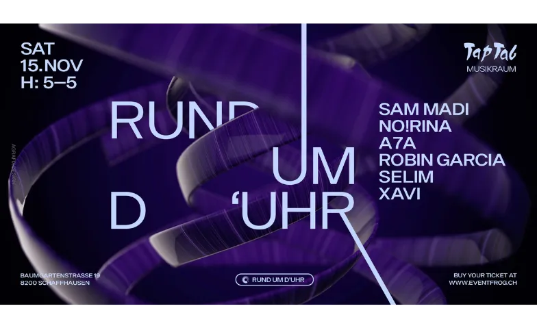 Es geht wieder rund in Schaffhausen – im Kreis der Nacht. Auch in der neuen Tap-Tab-Saison darf dieser House- und Techno-Event nicht fehlen. Rund um d'Uhr ist ein schier endloser Rave für alle, die nicht bis Mitternacht warten wollen, um loszutanzen. Bevor am Samstag, dem 15. November 2025, der Vorhang zum Mainfloor fällt, beginnt der… Weiterlesen »Rund um d’Uhr – TapTab Schaffhausen |