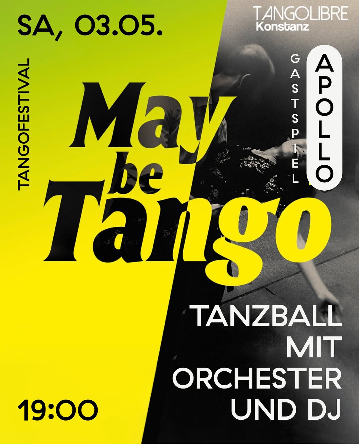 APOLLO Kreuzlingen Konstanzerstrasse 32,Kreuzlingen,SwitzerlandGastspiel vom TangoLibre Konstanz e. V. und Teil des Tango Festivals: Insgesamt finden an drei Tagen spannende Workshops, toller Unterricht sowie ein Showtanz und Ball statt. Samstagabend zeigen Patricia Hilliges und Matteo Panero aus Florenz ihr Können bei einem Showtanz im APOLLO. Das Orchester Entre Mundos spielt voller Energie zum Tanz. DJ: Michael Machill. Samstag, 03.05.2025 19:00… Weiterlesen »May be Tango im Apollo Kreuzlingen
