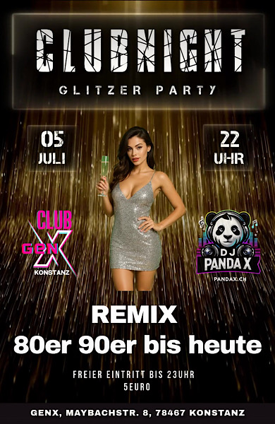 CLUBNIGHT Glitzer Party mit DJ PandaX im GenX Konstanz