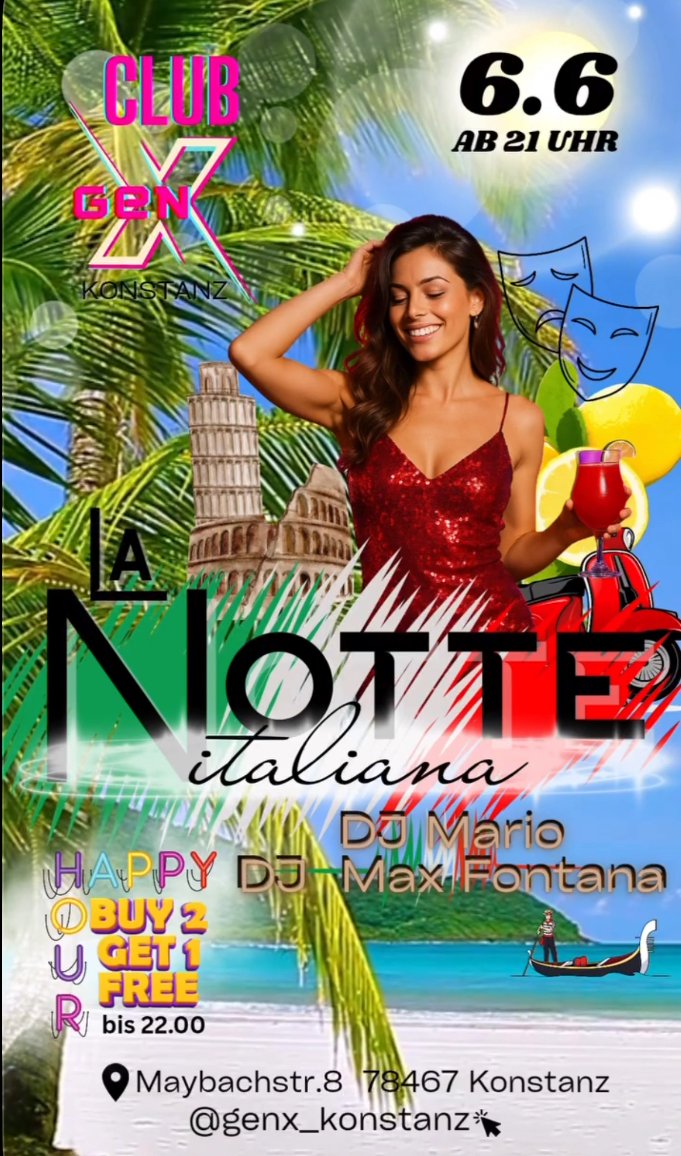 VYCE Konstanz Maybachstraße 8,Konstanz,Germany🎶 PROGRESSIVE CLUB VIBES mit DJ PandaX, DJ Happy Döring & DJ Dani Folgemann 📍 Club GenX | 📅 Mittwoch, 28. Mai 2025 (vor dem Feiertag!) | 🕘Start: 21:00 Uhr Der Abend vor Auffahrt wird legendär! Drei Top-DJs, ein Floor, grenzenlose Energie: Erlebe eine Nacht voller melodischem Techhouse, hypnotischen Grooves und pulsierender Emotion. 🌅 Die… Weiterlesen »Progressive Techhouse im GenX Konstanz