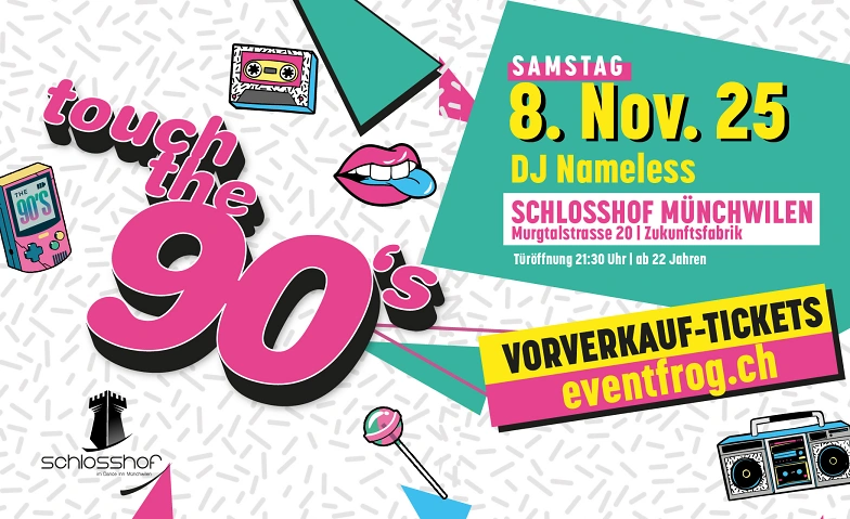 DanceInn Schlosshof Münchwilen Murgtalstrasse 20,Münchwilen,SwitzerlandSCHLOSSHOF jeweils ab 21:30🕺💃 Die verrückteste 90er-Party der Region ist zurück! 🎉✨ Nach der ausverkauften Ausgabe an Auffahrt feiern wir am Samstag, 8. November nochmals so richtig – und diesmal hast DU die Chance, mit dabei zu sein! 🔥 🎧 Mit dabei: DJ Nameless 🎶 🎈Dich erwartet: ✨ 90er-Deko 💥 Light-Visuals & Special Effects 🪩 Nostalgie pur & Partystimmung garantiert! 🎟️ Tipp: Hol dir… Weiterlesen »Touch the 90s – Schlosshof Münchwilen