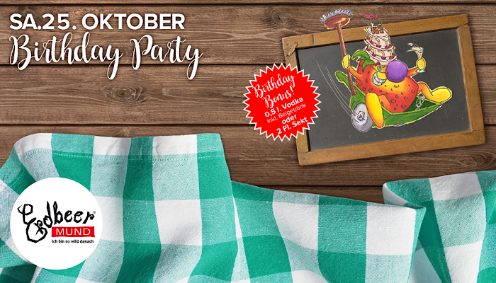 Erdbeermund Singen Otto-Hahn-Str. 5,Singen (Hohentwiel),GermanyHappy Birthday an alle Oktober Geburtstagskinder!!! Wir feiern gemeinsam mit dir das Älter-werden 🙂 !! Du hattest diesen Monat Geburtstag? Dann check bis 24 Uhr ein und du erhältst freien Eintritt sowie entweder 2 Flaschen Erdbeermund – Sekt oder eine 0,5l 9Mile Vodka inkl. Bei Getränk! Die wichtigsten Facts: – Separater Eingang (links auf dem… Weiterlesen »Birthday Party – Erdbeermund Singen