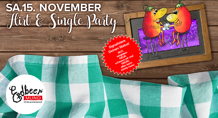 Erdbeermund Singen Otto-Hahn-Str. 5,Singen (Hohentwiel),Germany1,2,3 Single sein ist vorbei… jetzt heist es flirten was das zeug hält Am Samstag habt Ihr wieder die Möglichkeit dazu.!!! Flirtet, textet, tanzt miteinander. Schüchtern sein war gestern! Du willst Aktiv an der Single Night mit machen und signalisieren das du auch Single bist? Dann bekommst du am Eingang eine Liebesnummer. Der Rest ist… Weiterlesen »Flirt & Single Party – Erdbeermund Singen