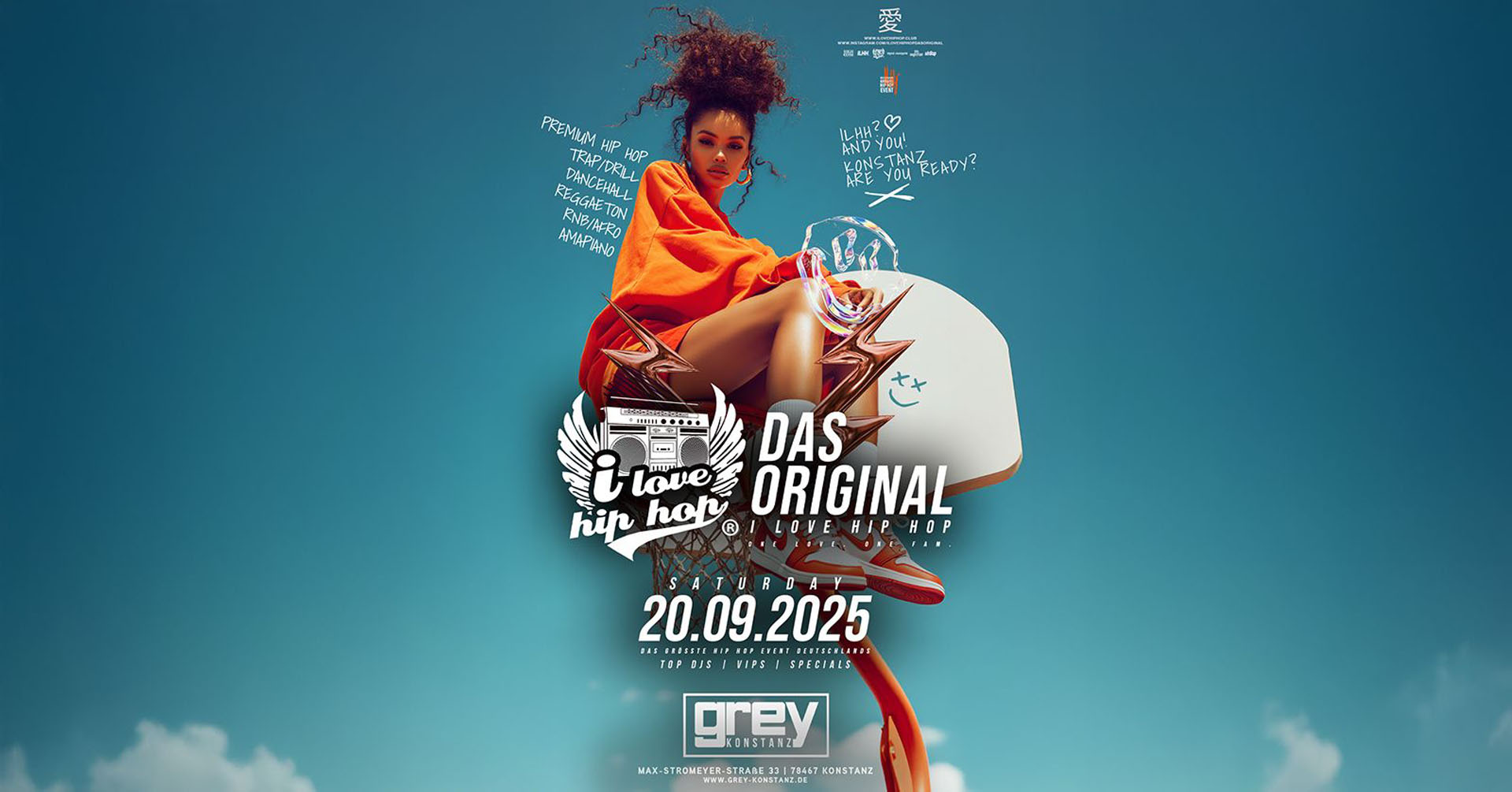 Grey Konstanz Max-Stromeyerstr. 33,Konstanz,GermanyPARTY AUF 4 FLOORS Konstanz – it’s time! Am 20.09.2025 steigt im Grey das größte Hip Hop Event Deutschlands: I LOVE HIP HOP DAS ORIGINAL Premium Hip Hop | Trap/Drill | Dancehall | Reggaeton | Amapiano Top DJs, Special & eine Nacht voller Energie. Das ist nicht einfach nur Party - sondern ein Erlebiniss. 👉… Weiterlesen »I ♥️ HIP HOP – Grey Konstanz
