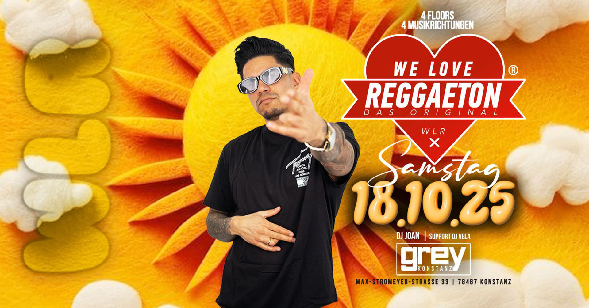 Grey Konstanz Max-Stromeyerstr. 33,Konstanz,Germany✨WE LOVE REGGAETON✨ PARTY AUF 4 FLOORS WE LOVE REGGAETON DAS ORIGINAL 🎉 4 Floors – 4 Musikrichtungen – 1 Nacht voller Vibes! Am Samstag, 18.10.25 verwandelt sich das Grey Konstanz in die heißeste Reggaeton-Party des Jahres! Mit DJ Joan & Support von DJ Vela heizen wir euch auf dem Mainfloor richtig ein 📍 Max-Stromeyer-Str.… Weiterlesen »We Love Reggaeton – Grey Konstanz