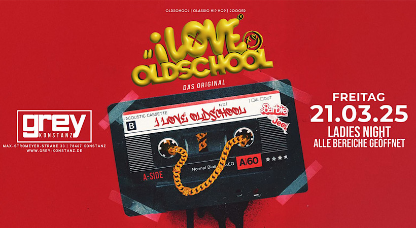 Grey Konstanz Max-Stromeyerstr. 33,Konstanz,GermanyI LOVe OLDSCHOOL & LADIES NIGHT 20 EURO FREIVERZEHR FÜR LADIES! I LOVE OLDSCHOOL 🎉 📅 Freitag, 21. März 📍 Grey Konstanz – Max-Stromeyer-Straße 33, 78467 Konstanz Erlebt die besten Oldschool-Vibes der Stadt! 🎶🎤 Wir bringen euch zurück in die goldene Ära des Hip-Hop, Funk und R'n'B mit Top DJs, vielen Specials und einer unvergesslichen… Weiterlesen »I Love Oldschool und Ladies Night im Grey Konstanz