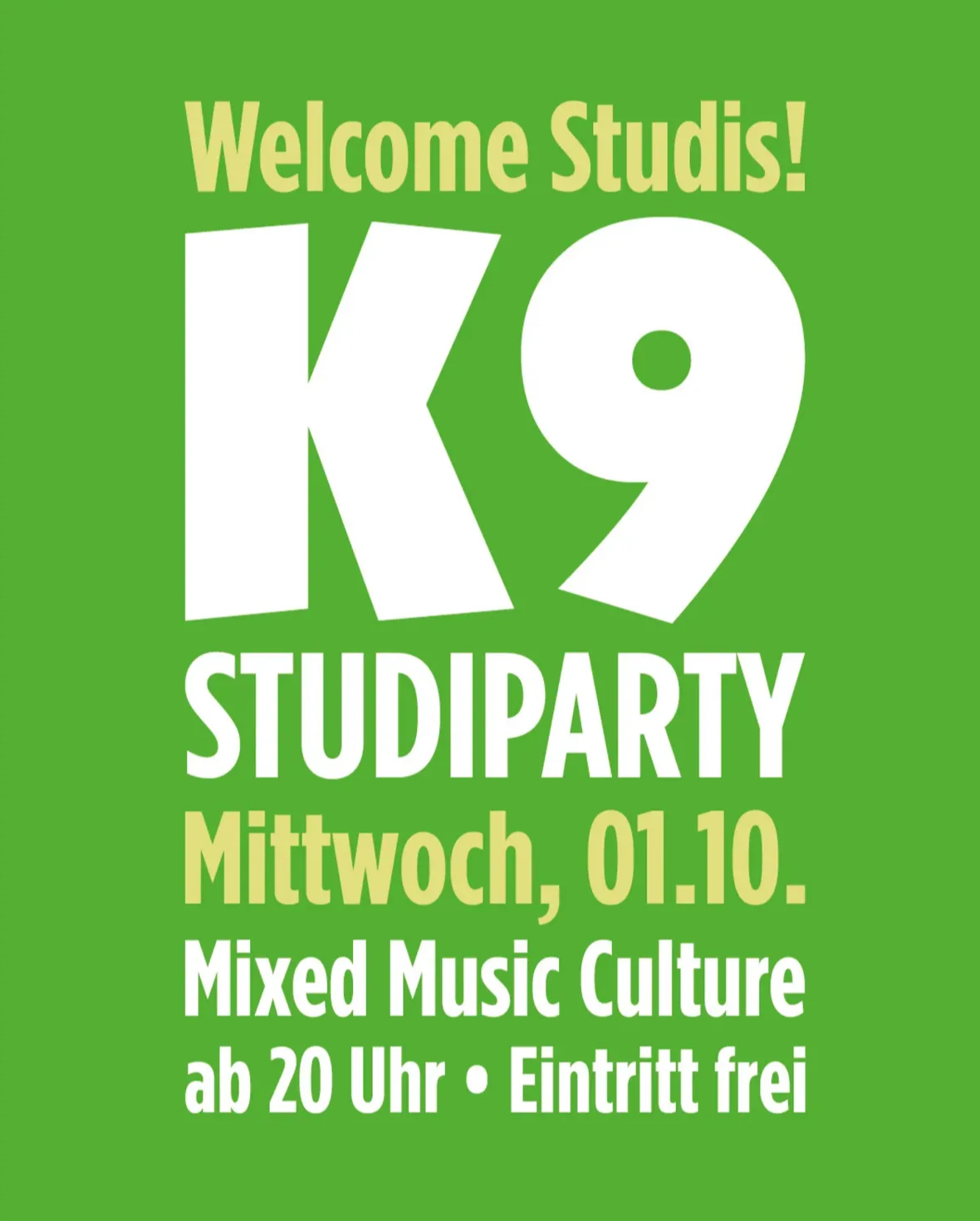 K9 Konstanz Hieronymusgasse 3,Konstanz,SwitzerlandMittwoch, den 01.10.2025 ab 20:00 Uhr Welcome Studis! |Foyer-Bar| Einmal im Monat öffnet das K9 Kunst- und Kulturzentrum seine Türen für die K9-Studiparty „Welcome Studis!" - den Abend für alle kulturbegeisterten Studierenden der Stadt. Egal ob von der Uni, der HTWG oder den Musik- und Kunstschulen oder Sonstiges - alle sind herzlich eingeladen! Freut euch… Weiterlesen »Studiparty – Kulturzentrum K9 Konstanz