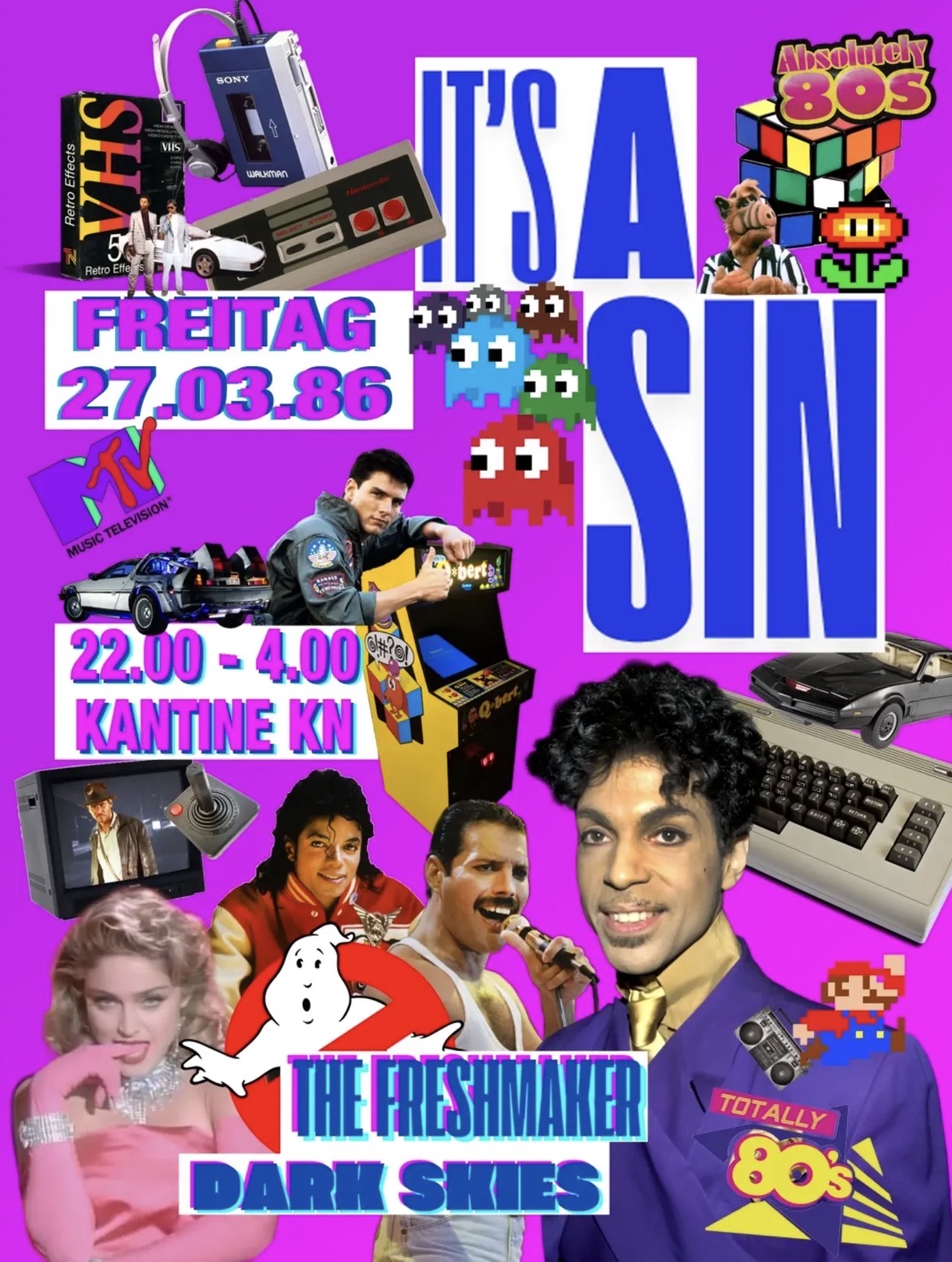 Kantine Konstanz Oberlohnstraße 3,Konstanz,GermanyFr 27.03.86 - 22:00!!! at @kantinekn IT'S A SIN when we change the flyer design and start the party earlier than usual but keeping the same vibe from the good old 80s with The Freshmaker & Dark Skies behind the decks. Prepare for a special night of the past to be remembered in the future!… Weiterlesen »IT’S A SIN – Kantine Konstanz