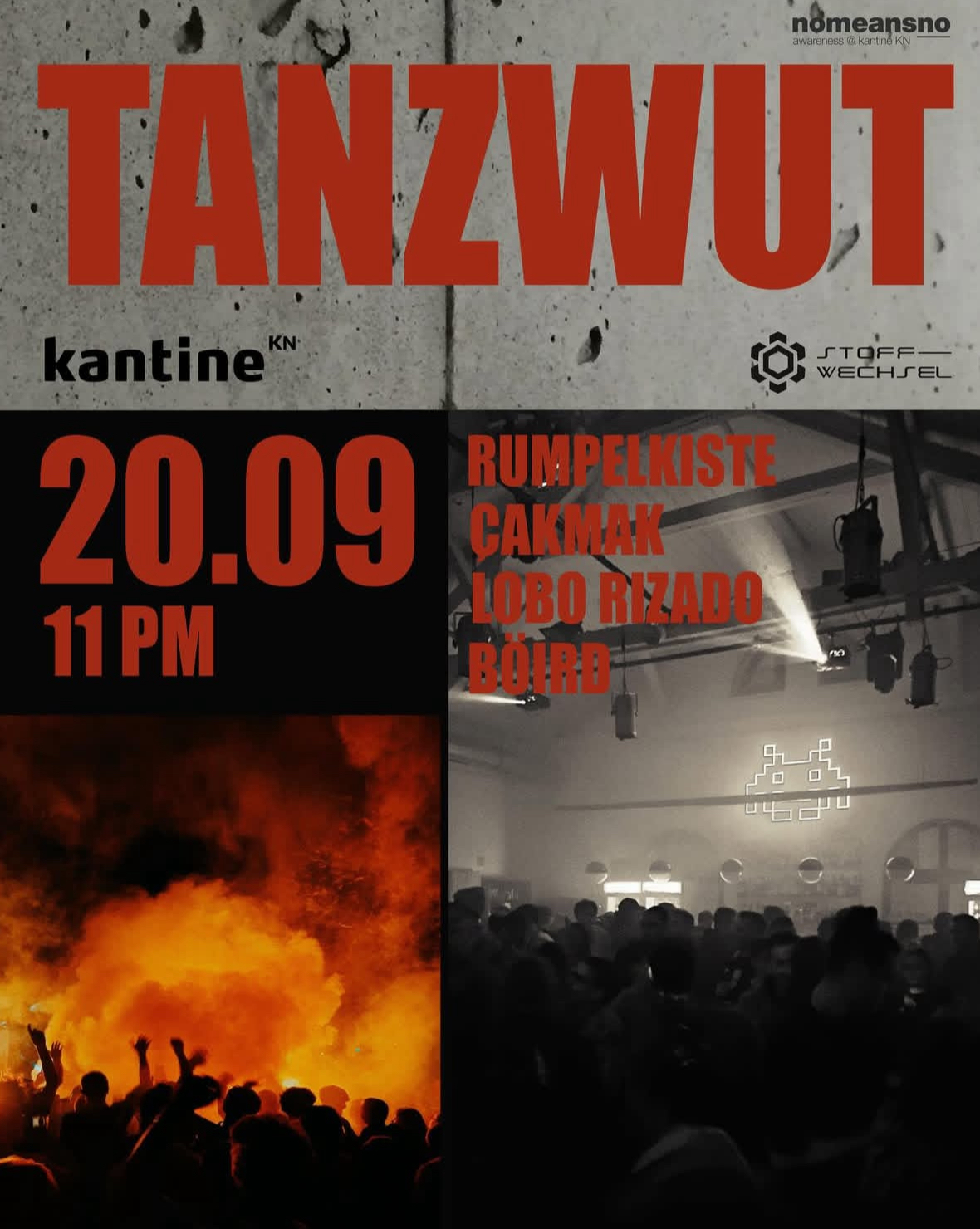 Kantine Konstanz Oberlohnstraße 3,Konstanz,GermanyTANZWUT // 20.09.2025 @kantinekn Der Ausdruck Tanzwut (lateinisch: Epilepsia saltatoria), auch, Tanzsucht, Tanzplage oder Tanzpest genannt, bezeichnet eine insbesondere im 14. und 15. Jahrhundert aufgetretene Erscheinung, die als psychogenes und massenhysterisches Phänomen beschrieben wurde. Das Stoffwechsel Kollektiv feiert dieses Jahr damit seinen Jahresabschluss in der Kantine. Eure Acts für den Abend: @rumpelkiste_krachmacher @ichbinboeird @lobo_rizardo @cakmak_de