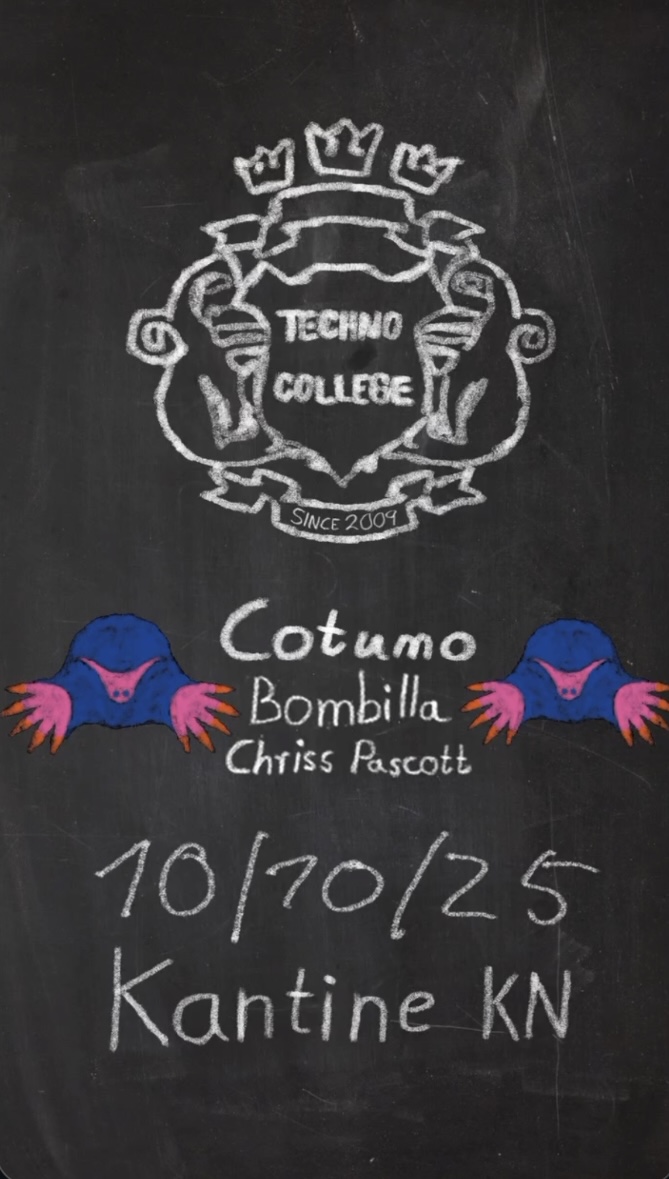 Kantine Konstanz Oberlohnstraße 3,Konstanz,Germany10/10/25 @kantinekn COTUMO @cotumo BOMBILLA @bombilla.music CHRISS PASCOTT @chrisspascott No mobiles on the dancefloor please. Leave your ego a the door. Let us rave as one 8,- before 12 10, - after 12 #technocollege #technokonstanz #kantinekn #bombilla #cotumo #chrisspascott #techno #rave #htwgkonstanz #unikonstanz #konstanz #underground #berlín #berlintechno