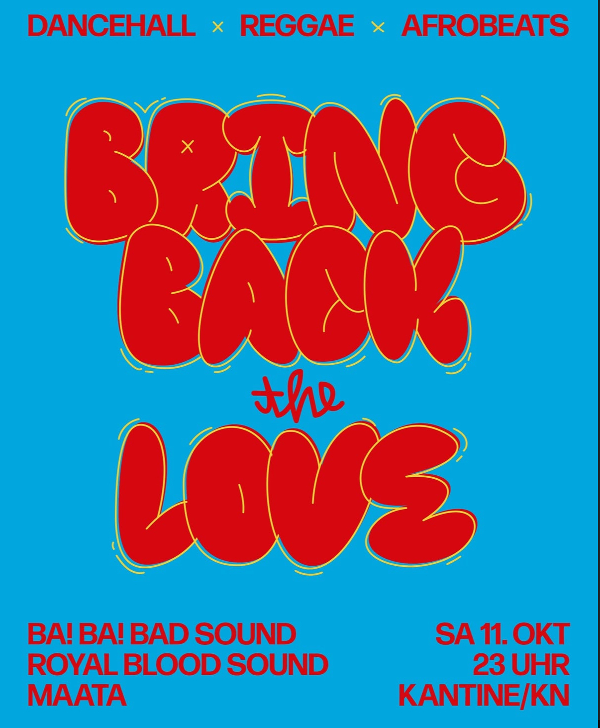 Kantine Konstanz Oberlohnstraße 3,Konstanz,GermanyDer 11. Oktober wird BA!BA!BAD! Denn dann kommt niemand geringeres als das @bababad.soundsystem in die @kantinekn . Die Jungs mischen mit ihrem innovativen Mix aus Dancehall, Afrobeats, Shatta, Amapiano und Reggaeton gerade ordentlich die deutschen Clubs auf. Bei ihren eigenen Partys in ihrer Heimat NRW geben sich regelmäßig die baddesten Artists und MCs die Klinke… Weiterlesen »Bring Back the Love – Kantine Konstanz