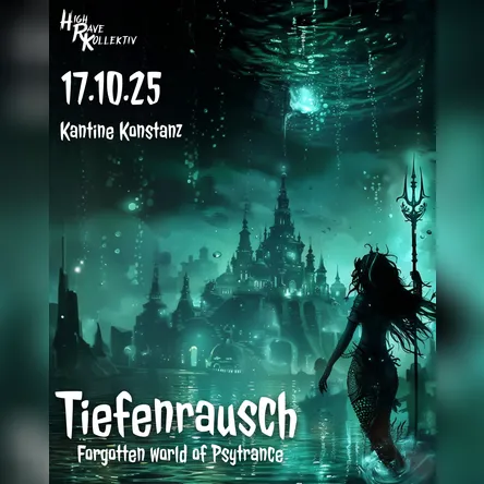 Kantine Konstanz Oberlohnstraße 3,Konstanz,GermanyTiefenRausch - Forgotten world of Psytrance Ein Ruf aus den Tiefen. Wasser schlägt über dir zusammen, das Licht der Oberfläche verblasst - und vor dir erwacht eine versunkene Welt. Hier unten regiert der Rhythmus, uralt und mächtig. Etwas geheimnisvolles ruft nach dir und du lässt dich sinken. Tickets im Vorverkauf unter www.hrkevent.de