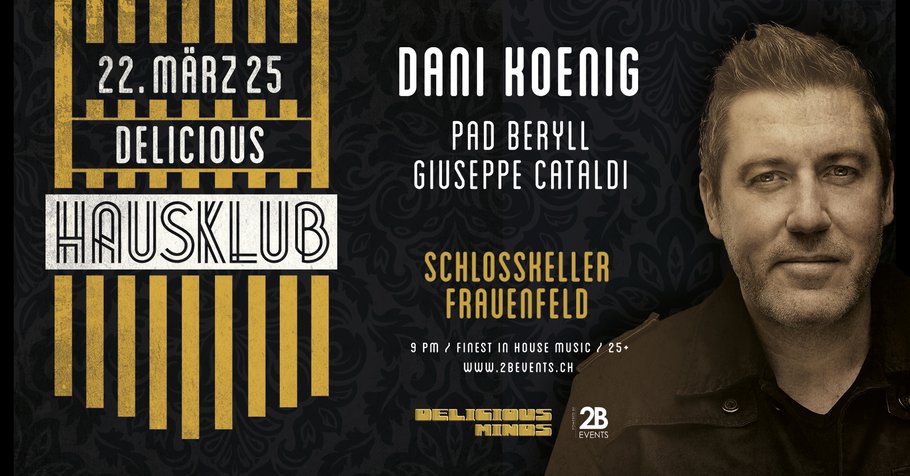 Schlosskeller Frauenfeld Schlossmühlestrasse 1,Frauenfeld,SwitzerlandDatum: Samstag, 22.03.2025 Zeit: 21.00 Uhr Location: Schlosskeller Frauenfeld Mindestalter: 25 Jahren Eintritt: VVK CHF 15 | Abendkasse CHF 20 DJ / Act: Dani Koenig | Pad Beryll | Giuseppe Cataldi Format: FINEST HOUSE MUSIC 🪩 DELICIOUS HAUSKLUB – DIE HOUSE CLASSICS PARTY FÜR ALLE AB 25 JAHREN! 🪩 Mach dich bereit für eine unvergessliche… Weiterlesen »DELICIOUS HAUSKLUB im Schlosskeller Frauenfeld