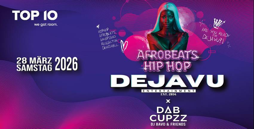 TOP10 Singen Otto-Hahn-Str. 5,Singen (Hohentwiel),GermanyHIP HOP DEJAVU – NEXT LEVEL 🔥 Zum ersten Mal nicht nur Hip Hop – sondern die fette Collabo aus HIP HOP x AFROBEATS x AMAPIANO x REGGAETON An den Decks: DJ BAVO & Friends – bekannt für die heftigsten Beats & Abriss-Partys am Bodensee. Mehr Vibes. Mehr Energy. Mehr Eskalation. Be there