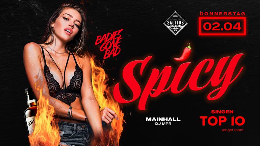 TOP10 Singen Otto-Hahn-Str. 5,Singen (Hohentwiel),GermanyThis night will be SPICY. Willkommen zur heißesten Ladies Night aller Zeiten! Scharf, schärfer, unsere Ladies… Also, rein in dein heißestes Outfit an und mach dich bereit für eine Nacht voller Spaß, Flirts und unvergesslicher Erlebnisse. Lasst uns gemeinsam die Grenzen überschreiten, die Regeln brechen und feiern, als wenn niemand zuschaut. SALITOS SPECIAL BIS 22.30… Weiterlesen »Spicy – powered by Salitos – Top10 Singen