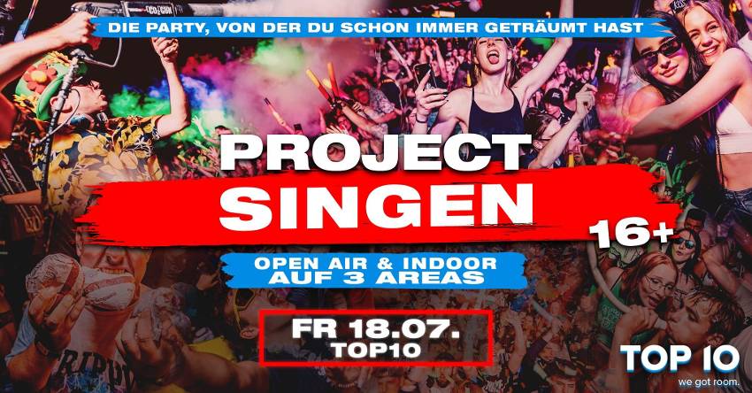 TOP10 Singen Otto-Hahn-Str. 5,Singen (Hohentwiel),Germany PROJECT SINGEN Sei dabei, wenn Singen Geschichte schreibt und erlebe eine Nacht, die du niemals vergessen wirst. Am 18. Juli starten wir die gröĂte Hausparty der Region im TOP 10. An diesem Abend wollen wir alle MaĂstĂ€be sprengen â wirklich alle!  PARTY REKORDSage allen deinen Freunden Bescheid â es soll einfach jeder von dieser Party erfahren!… Weiterlesen »Project Singen – Top10 Singen
