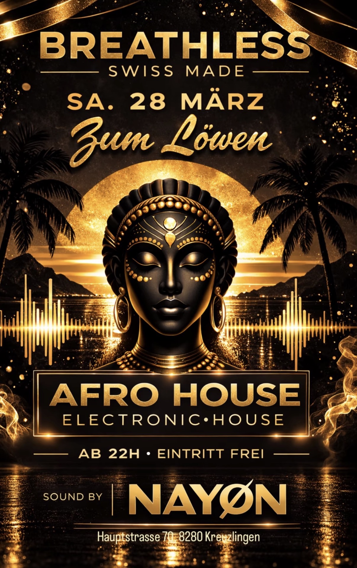 Zum Löwen Kreuzlingen Hauptstrasse 70,KreuzlingenKreuzlingen - seid ihr bereit? Am Freitag, 8. November bringt Mattey Webber, pure Afro House, Latino House & Deep House Energy und mehr ins Zum Löwen Kreuzlingen! Lasst uns tanzen, coole Drinks genießen, fühlen und die Nacht gemeinsam feiern! Zum Löwen Kreuzlingen Ab 22:00 Uhr Ab 18+ #Kreuzlingen #ZumLöwen #AfroHouse #LatinoHouse #DeepHouse #DJMatteyWebber #ThurgauEvents #KonstanzNightlife… Weiterlesen »Breathless – Zum Löwen Kreuzlingen